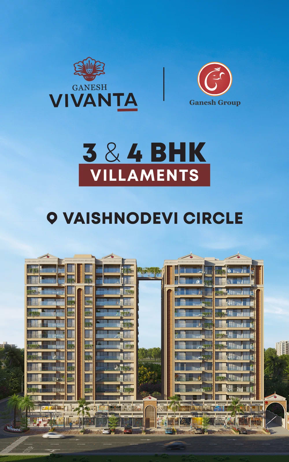 In the vibrant locality of Vaishno Devi Circle, Ahmedabad, Ganesh Vivanta by Ganesh Group stands as a thoughtfully crafted residential address that balances convenience, lifestyle, and community living. Situated opposite Belecia Green Party Plot in Khoraj, this premium development is designed to offer a refreshing blend of contemporary comfort and connected living.