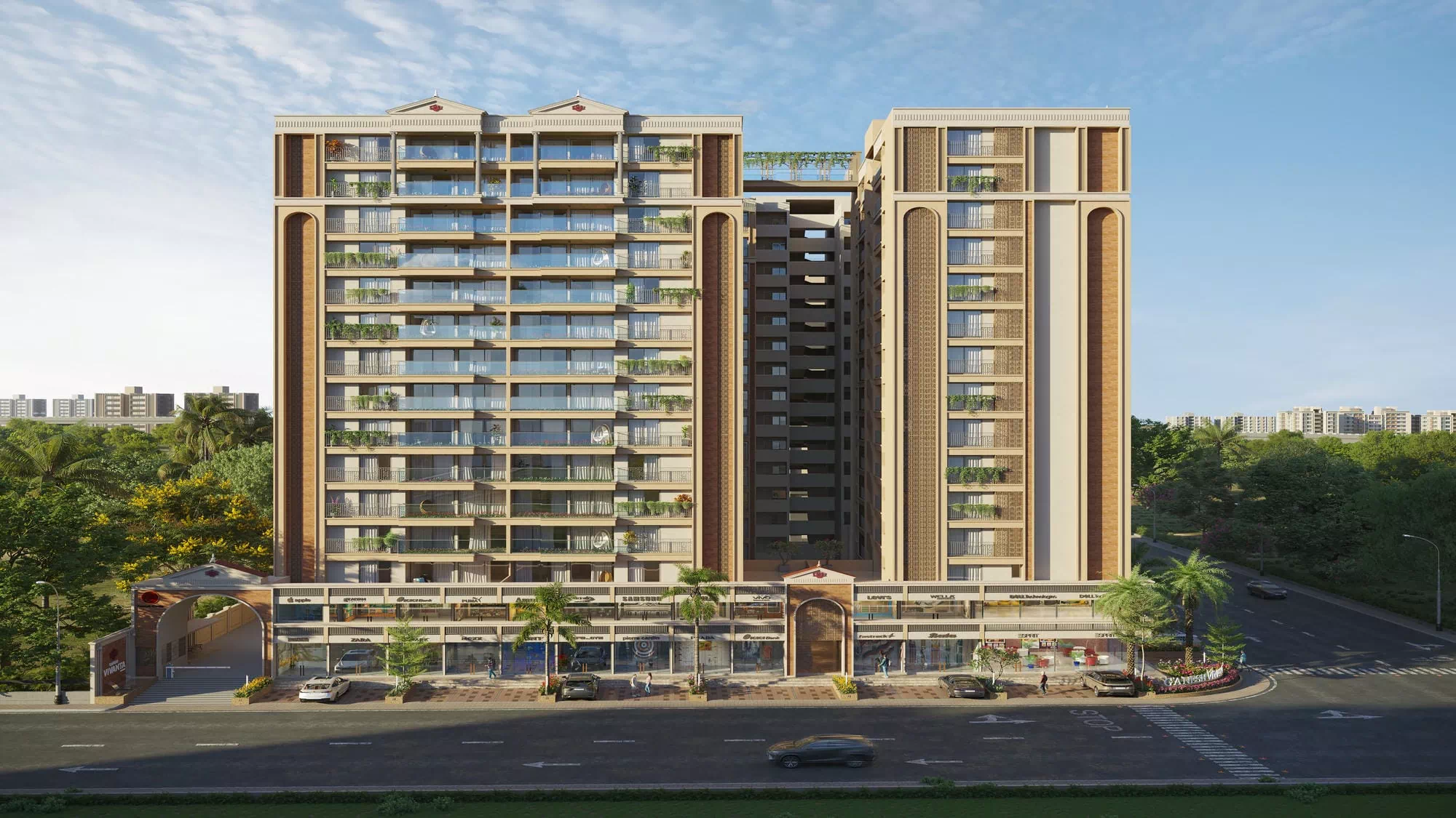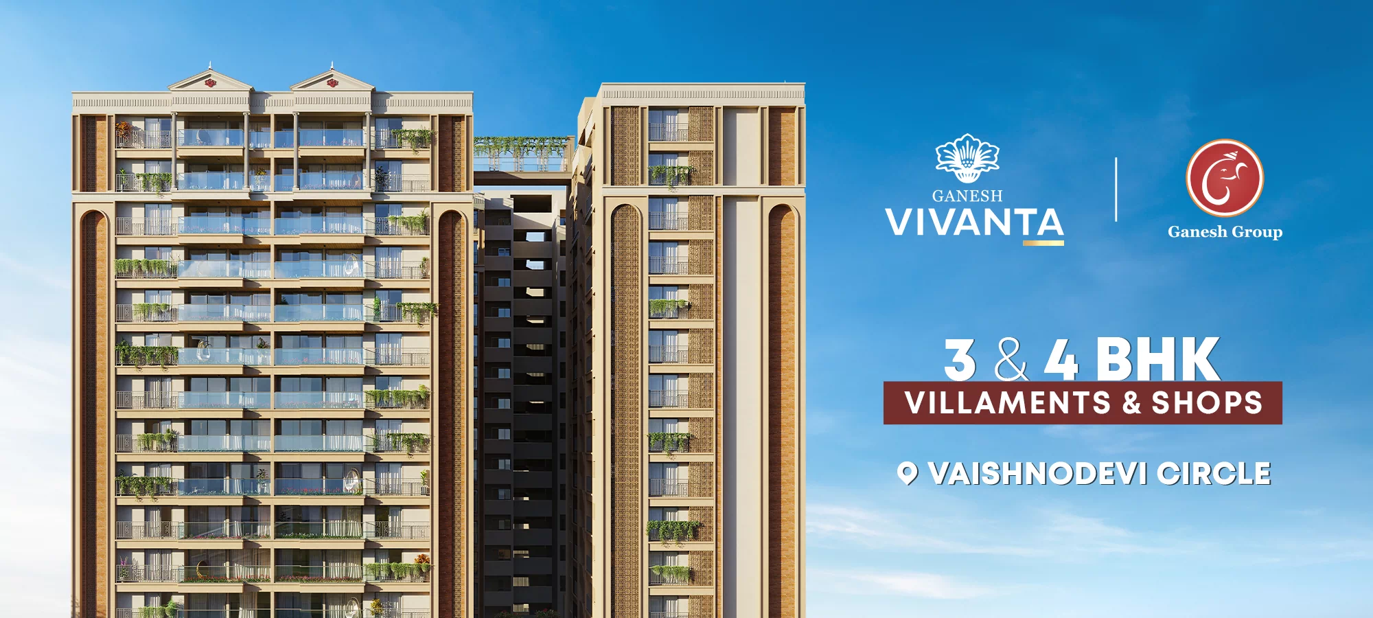 In the vibrant locality of Vaishno Devi Circle, Ahmedabad, Ganesh Vivanta by Ganesh Group stands as a thoughtfully crafted residential address that balances convenience, lifestyle, and community living. Situated opposite Belecia Green Party Plot in Khoraj, this premium development is designed to offer a refreshing blend of contemporary comfort and connected living.